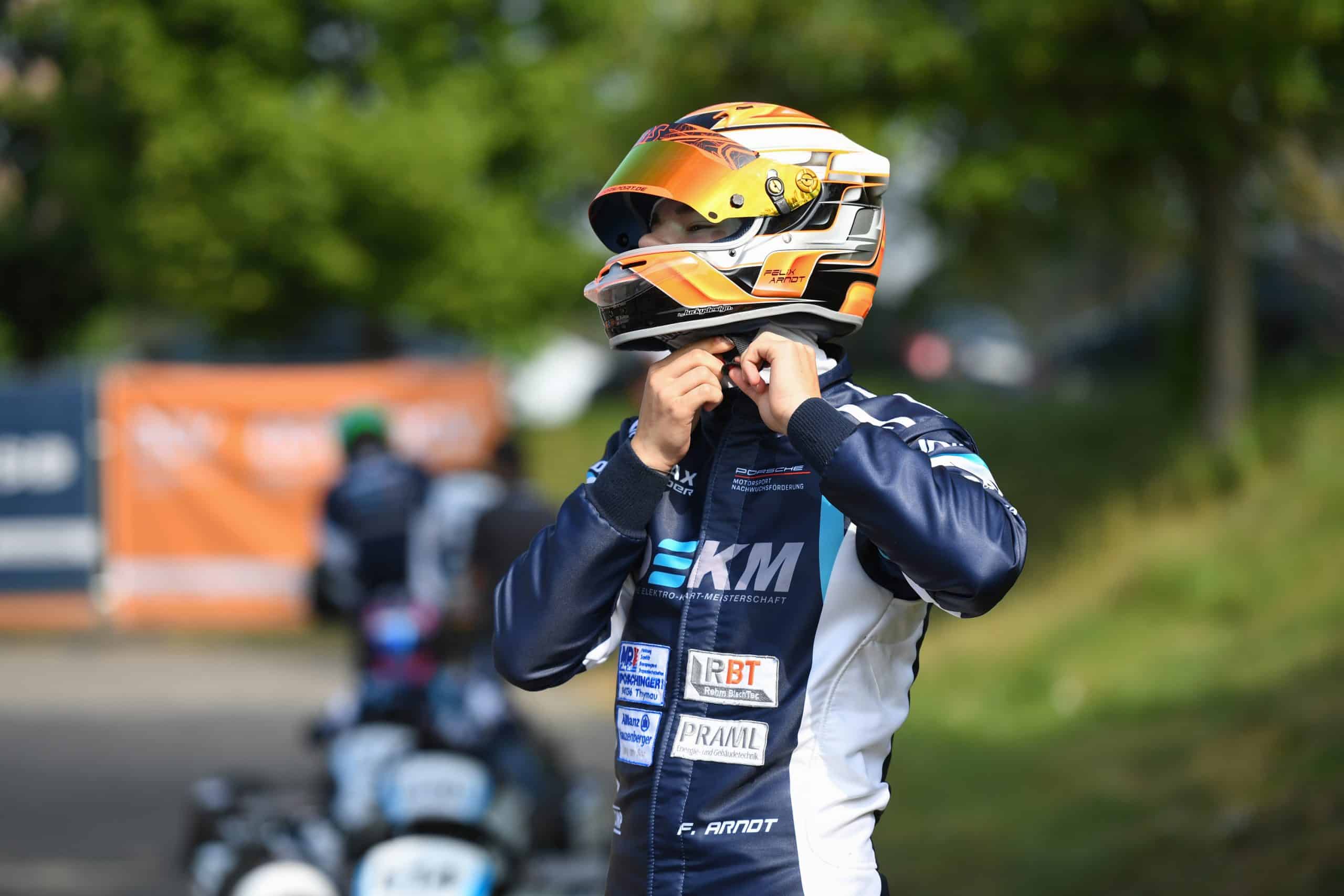 Elektroautos sind im Rennen und PRAML unterstützt als Pionier für E-Tankstellen Rennfahrjunior Felix Arndt bei seinem ersten Start.